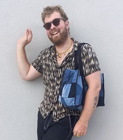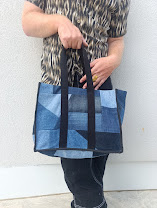 Sac en patchwork de jeans recyclé. Sangle Coton. Poche plaquée intérieure. Doublure : cretonne 100% Coton